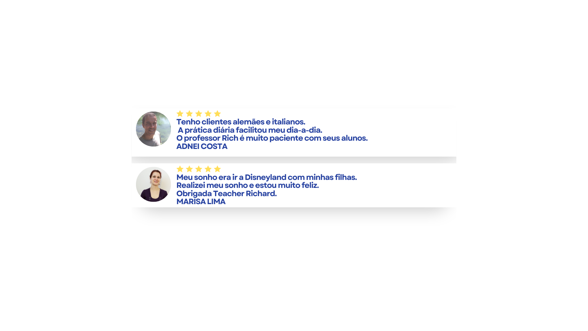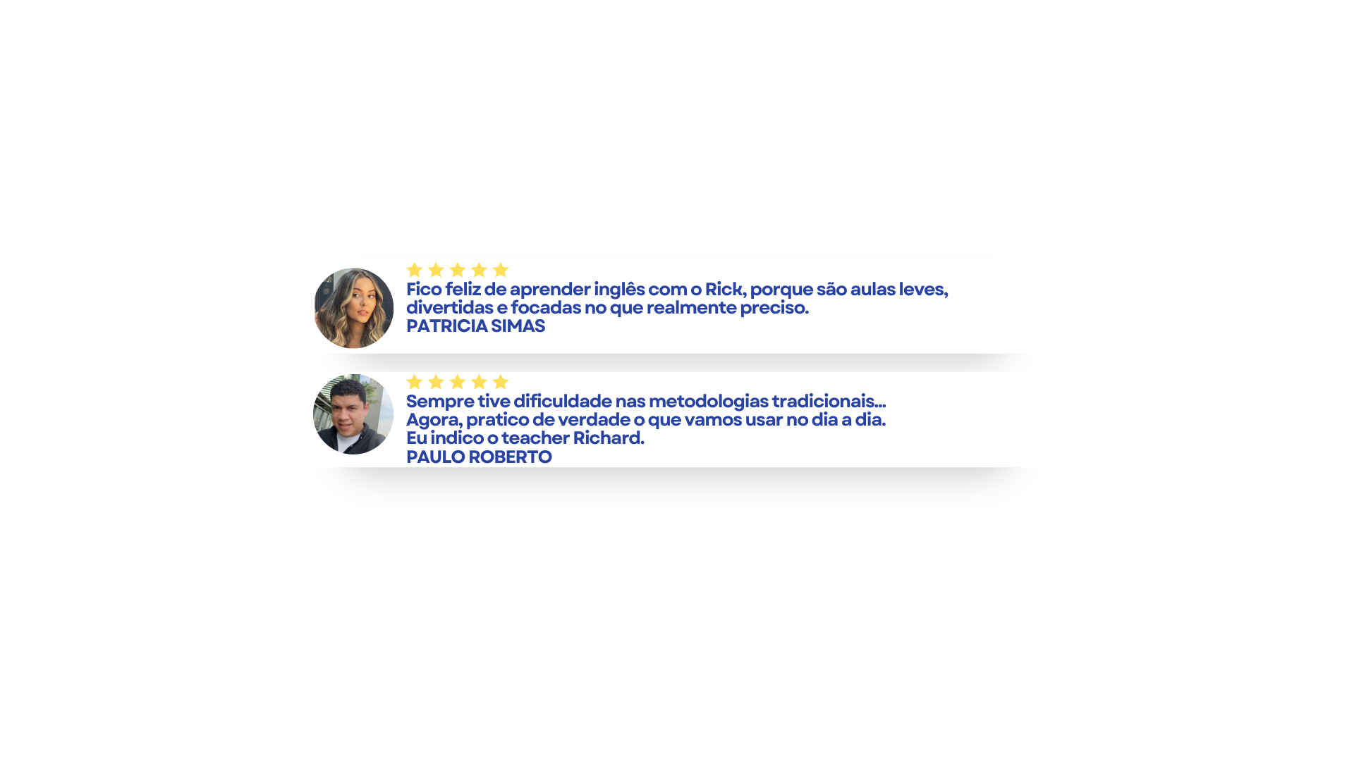 "Teacher Richard (Ricardo Araújo) é muito experiente, aprendi muito com ele, aulas leves divertidas e sempre focadas na fala, eu quase não falava, hoje me comunico normalmente em Inglês. Thank you so much teacher Rick!"
