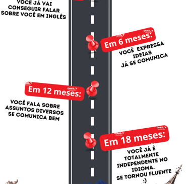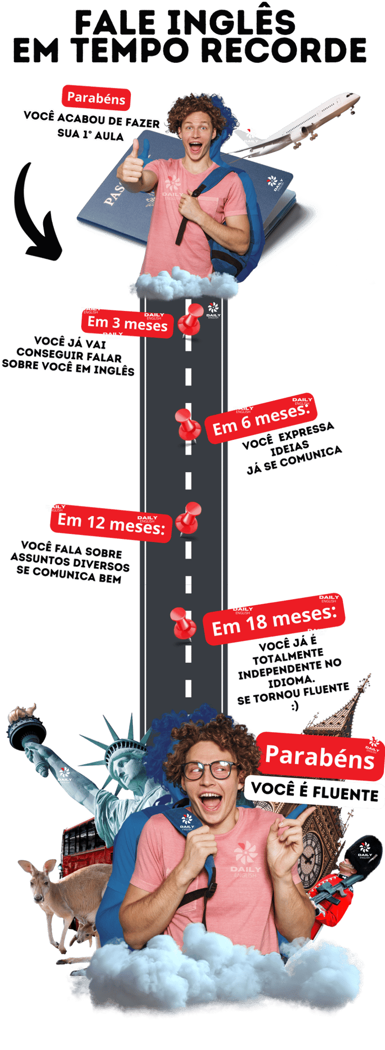 O aluno (a) fica totalmente livre para fazer o curso no seu tempo, mais rápido ou mais lento de acordo com seus objetivos e agenda, o (a) aluno escolhe quanto tempo ficar em cada nível. É previsto que começando do zero, o aluno alcançara a fluência em 18 meses! Para aqueles que iniciarem no nível IMPROVERS o tempo é de 9 meses!